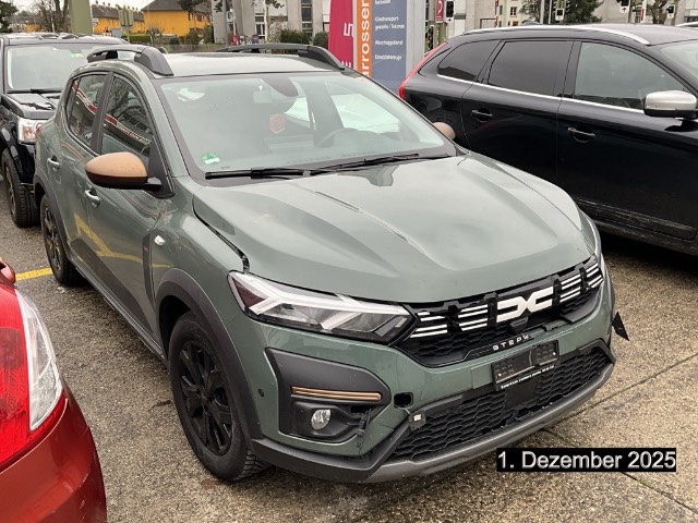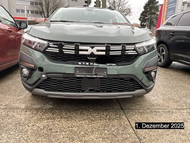 Garantie: Dacia Garantie: 2 Jahre Lackgarantie, Gummifussmatten mit topografischem Muster, Airbag: Beifahrerairbag abschaltbar, Drehzahlmesser, Dreipunkt-Sicherheitsgurte auf allen Plätzen, Licht: Automatisches LED-Tagfahr- und Abblendlicht, Airbag: Windowairbags vorne und hinten, Elektronisches Stabilitäts-Programm mit Berganfahrhilfe (ESP), Haifischantenne, Kopfstützen hinten höhenverstellbar, Polster: Grauer Micro-Cloud-Stoff mit speziellen Kupfziernähten und Dacia Logo-Prägung, ISOFIX-Kindersitz-Verankerungssystem auf den hinteren Aussenplätzen, Dekor: Kupferbraune Stoffeinsatz Armaturenbrett und vordere Türen Mattchrom an Lenkrad, Schaltung und Türöffnern, Heckscheibenheizung, Eco-Mode zur Reichweitenoptimierung, Schaltpunktanzeige, Servolenkung elektrisch, Licht: Nebelscheinwerfer, Start/Stop-Funktion, Airbag: Frontairbags und Seitenairbags vorne, Assist: Aktiver Notfall-Bremsassistent (AEBS), Garantie: Dacia Garantie: 3 Jahre oder 100'000 km (ab 1. Inv.), Aussenspiegel in Kupferbraune, Türgriffe in Wagenfarbe, Sitze: Rücksitzlehne umklappbar, Assist: Extended Grip, Heckscheibenwischer, Zentralverriegelung mit Funkfernbedienung und automatischer Türverriegelung nach dem Anfahren, Lenkrad: Lenkrad tiefenverstellbar, Bordcomputer, Elektrische Fensterheber hinten, Assist: Notruf-Funktion (eCall), Licht: Halogen-Fernlicht, Sitze: Fahrersitz höhenverstellbar mit Armlehne, Kopfstützen vorne fix, Wegfahrsperre elektronisch, Dekor: Zierleiste in Kupferbraune an den Türen, Sitze: Rücksitzbank 1/3 - 2/3 umklappbar, Räder: Alufelgen Mahalia schwarz (16-Zoll) 205/60 R16, Licht: Drittes Bremslicht, Katalysator geregelt, Lenkrad : Höhenverstellbares Lenkrad, Modularer Kofferraumboden, Dekor: Zierrahmen in Kupferbraune an den Lüftungsdüsen, Aussenspiegel elektrisch verstellbar und beheizbar, Elektrische Fensterheber vorne mit Impulsschaltung Fahrerseite, Assist: Rückfahrkamera, Garantie: Dacia Garantie: 6 Jahre Durchrostungsgarantie, Antiblockiersystem (ABS), Abnehmbare Smartphone-Halterung, Erhöhte Bodenfreiheit,Unterfahrschutz vorne und hinten im SUV-Look,Radlaufverbreiterungen,Dachreling, Assist: Tempomat mit Geschwindigkeitsbegrenzer, Getriebe: CVT-Automatik-getriebe, Licht: Nebelschlussleuchte, Keycard Handsfree, Klima: Klimaautomatik mit Pollenfilter, Modulare Dachreling, Assist: Regensensor, Lenkrad: Lenkrad in Lederoptik, Räder: Reifendruckkontrollsystem, Leselicht vorne, Innenleuchte vorne
