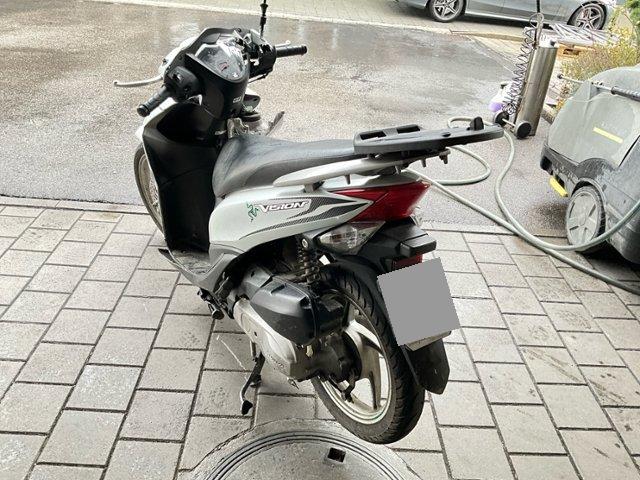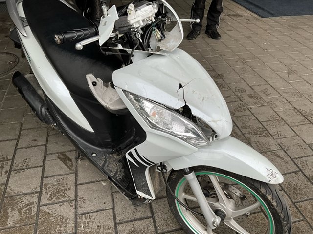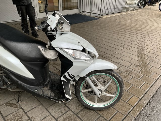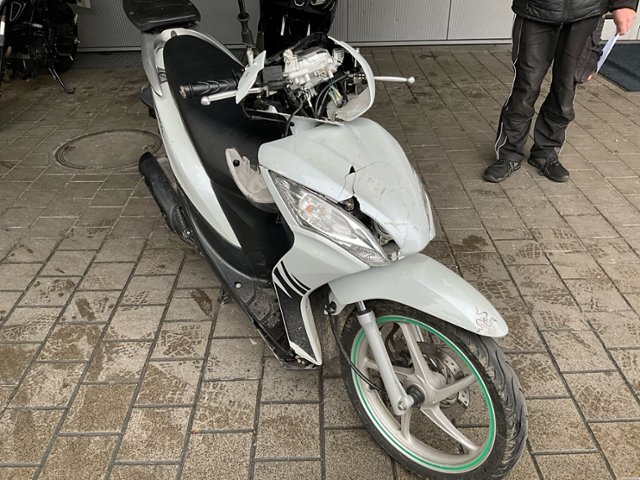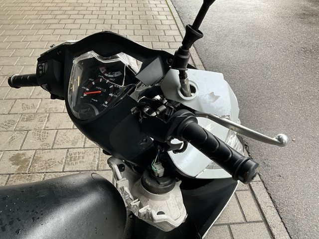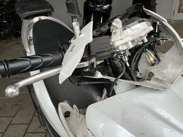 Schutzblech vorne defekt. Vorderrad beschädigt. Gabel beschädigt. Lenker verbogen.