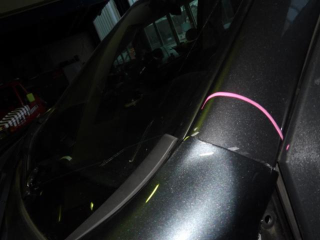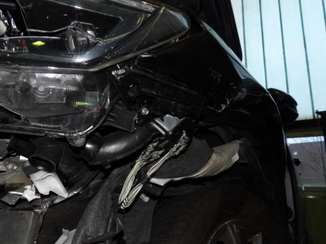 Linke Seite beschädigt. Anstoss links im Bereich der A-Säule. Tür vorne links ist eingedrückt.