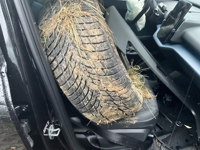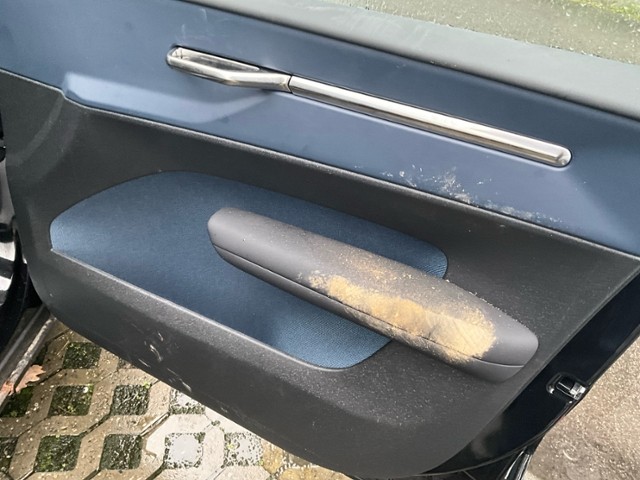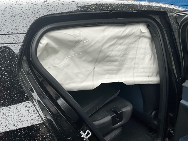 Gurtstraffer ausgelöst. Dachhimmel gerissen. Starke Verschmutzung im Innenraum.