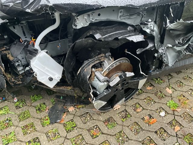 Vorderachse ist beschädigt. Hinterachse rechts beschädigt. Lenkgetriebe ist beschädigt. Motoraufhängung/Aggregateträger ist beschädigt.