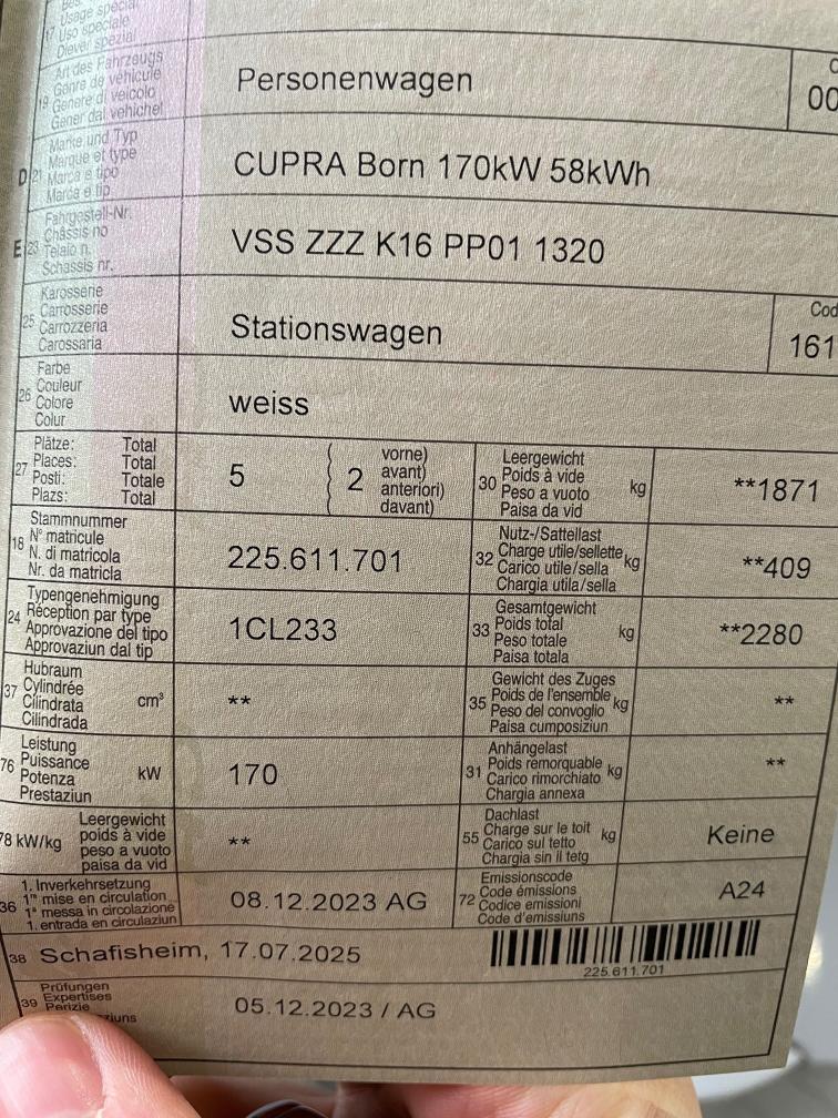 Fahrzeug hat noch Werksgarantie bis am 07.12.2027 oder 80'000km, was zuerst eintrifft. Leichter Rauchergeruch. „Die gesetzlichen Gewährleistungsansprüche (insbesondere Wandelung und Minderung) werden wegbedungen und ersetzt durch die bestehende Werksgarantie des Herstellers.