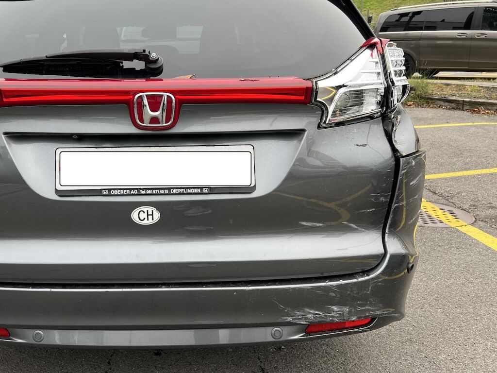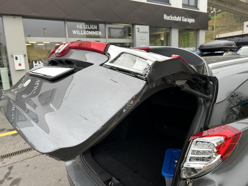 Anprall hinten rechts: Dabei wurde die Stossstange, der äussere Parksensor, die Heckklappe, die mittlere und die seitlichen Heckleuchten, die Seitenwand und die D-Säule hinten rechts beschädigt. Motor Getriebe Vorderachse Hinterachse Airbags ausgelöst: 0 Nein ( Abfallcode 16.01.04ak )