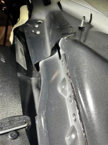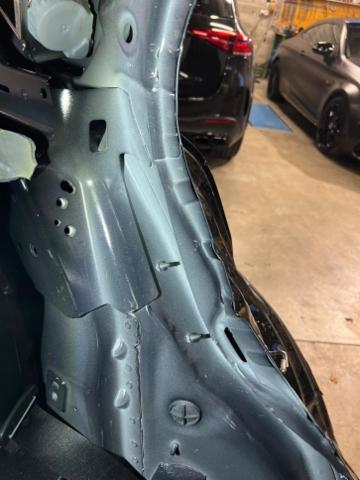 Linke Seite beschädigt. Anstoss links im Bereich der D-Säule. Tür hinten links ist eingedrückt.