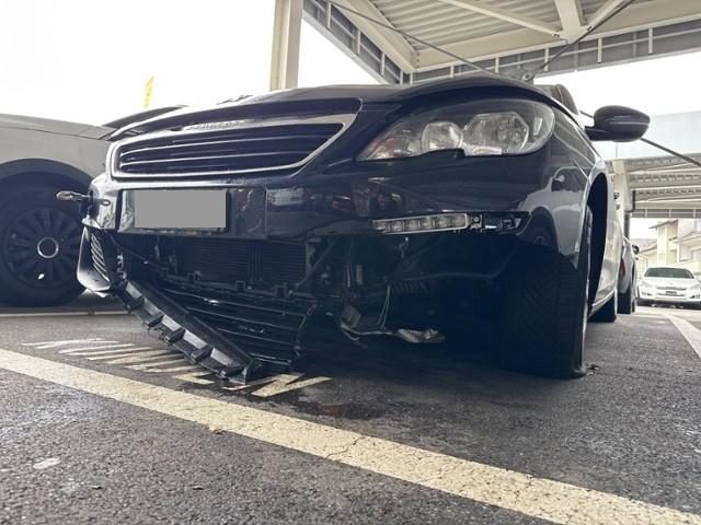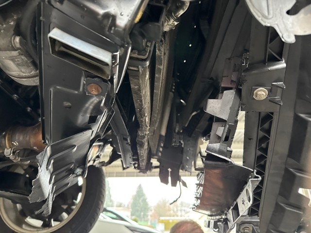 Aufhängungsteile vorne links beschädigt. Risiko Vorderachse.