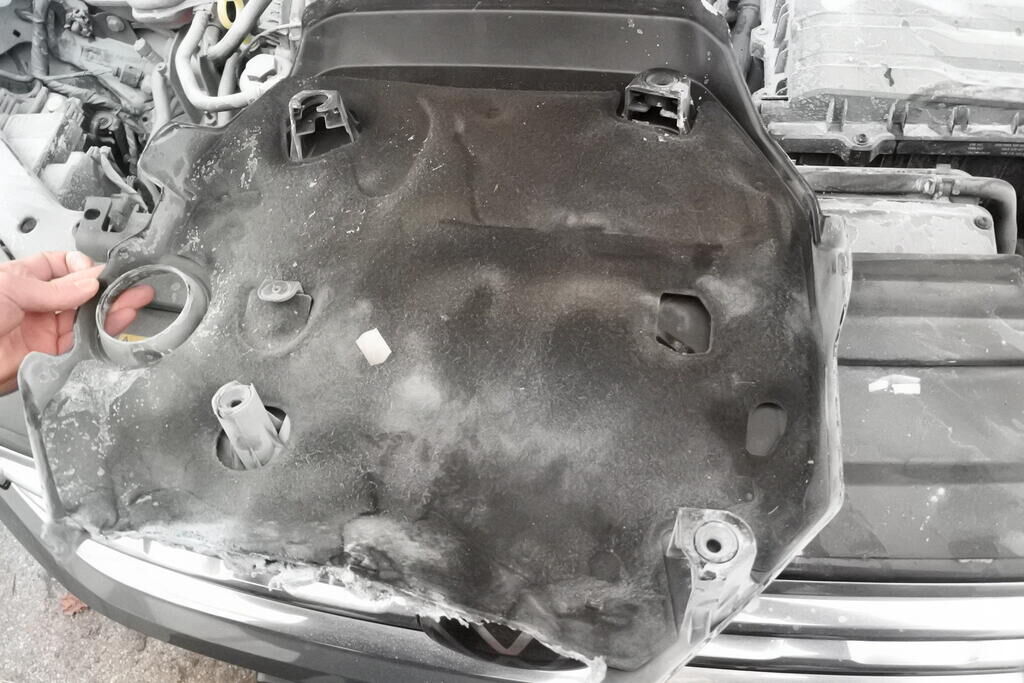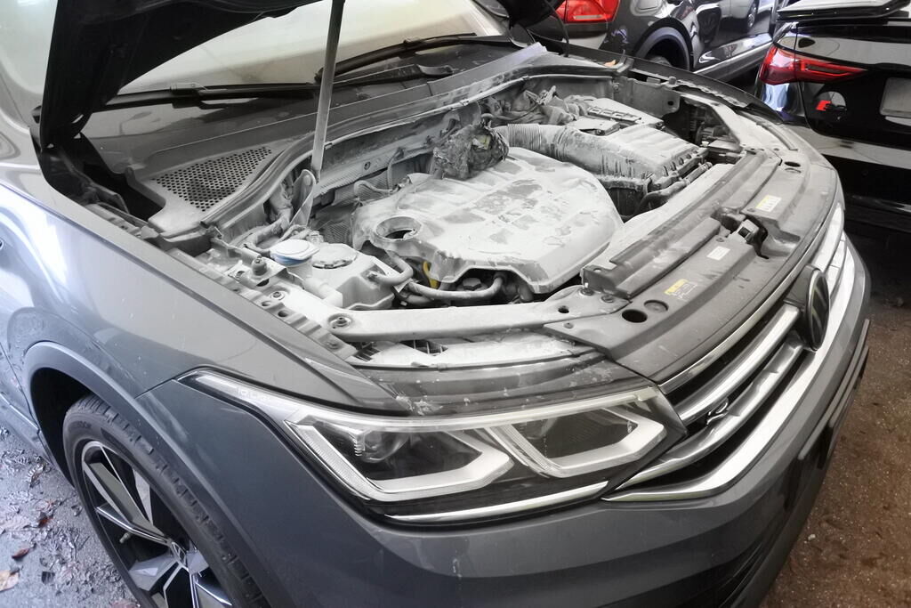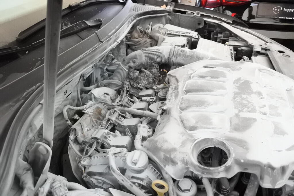 Die Motorabdeckung oben wurde in Folge der fehlerhaften Montage überhitzt. Sie entzündete sich durch die Hitzeabstrahlung vom Turbolader welcher unmittelbar hinter der Abdeckung positioniert ist. Verschiedene Verkabelungen, Abdeckungen, Isolationen wurden in Folge vom offenen Feuer beschädigt. Neben den Motoranbauteilen wurden auch diverse elektrische und elektronische Bauteile örtlich beschädigt. Risiko Kabelstrang, Steuergerät, Folgeschäden usw. ) Das Feuer wurde mittels einem Staubfeuerläscher erstickt. Diese Rückstände wurden ca. 24 Std. später sehr nachhaltig entfernt. Weitere Schäden gehen aus den Fotos hervor. Motor Getriebe Vorderachse Hinterachse Airbags ausgelöst: 0 unbekannt ( Abfallcode 16.01.04ak )