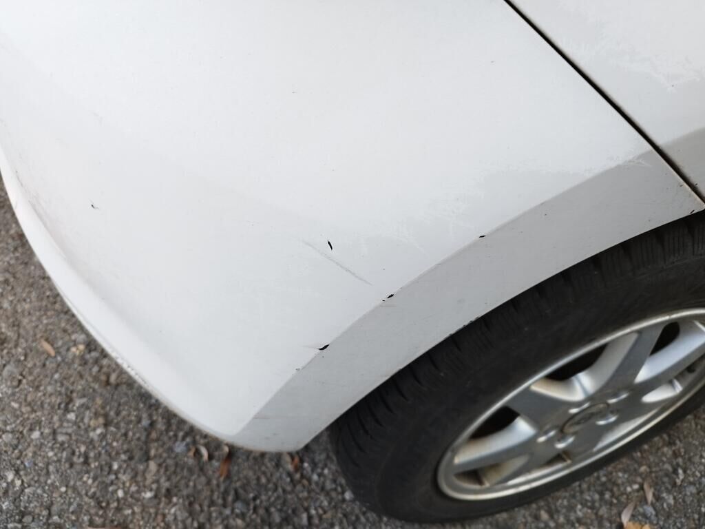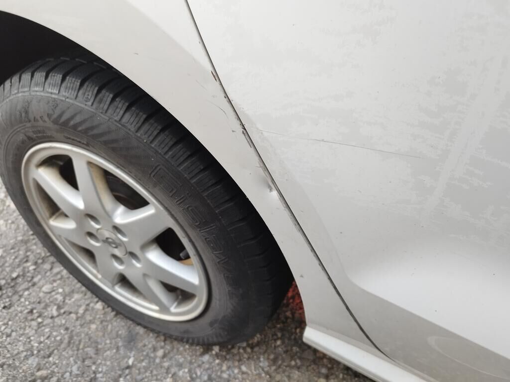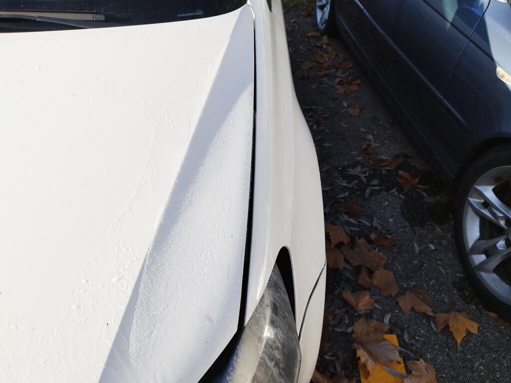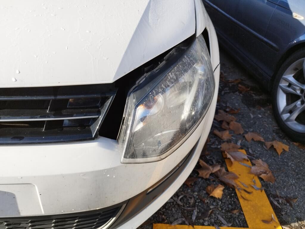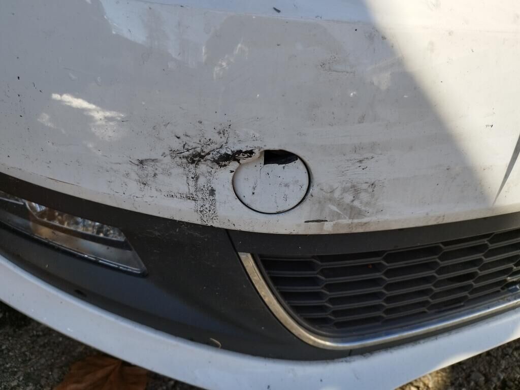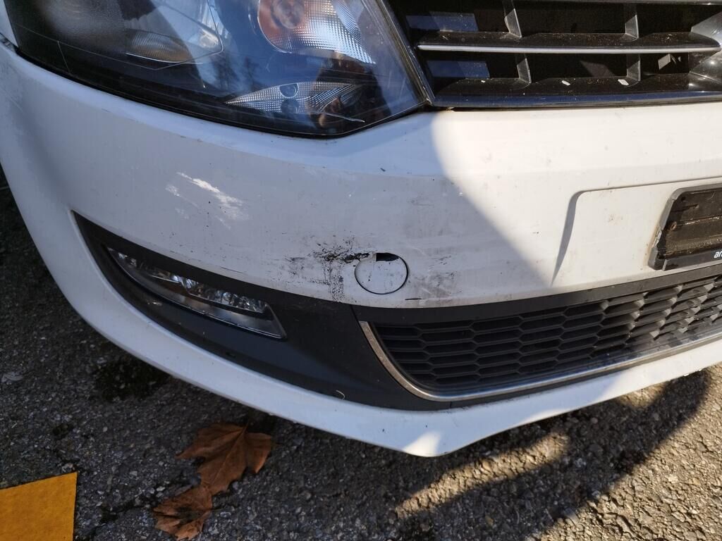Die Motorhaube konnte nicht geöffnet werden, da die Front nach links verschoben ist.