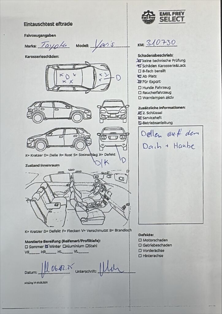Keine technische Prüfung (Werkstatttest) vorgenommen Diverse Schäden an Karosserie/Lack. Fahrzeug ab Platz, ohne Garantie und Aufbereitung. Motor Getriebe Vorderachse Hinterachse Airbags ausgelöst: 0 unbekannt ( Abfallcode 16.01.04ak )