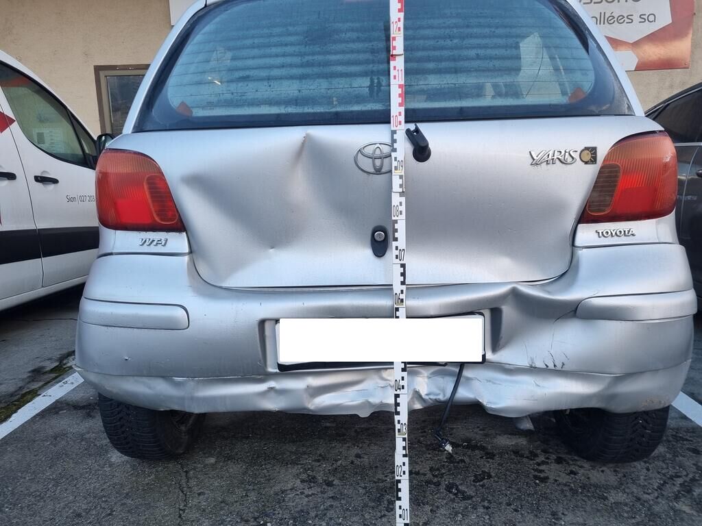 Hayon, jupe arrière, plancher coffre, aile arrière gauche enfoncés, longeron arrière droit plié. Pare-chocs arrière, feu arrière droit cassés. Aile avant gauche enfoncée (dommage préexistant). Véhicule encore utilisé par détenteur actuel, kilométrage évolutif. Motor Getriebe Vorderachse Hinterachse Airbags ausgelöst: 0 unbekannt ( Abfallcode 16.01.04ak )