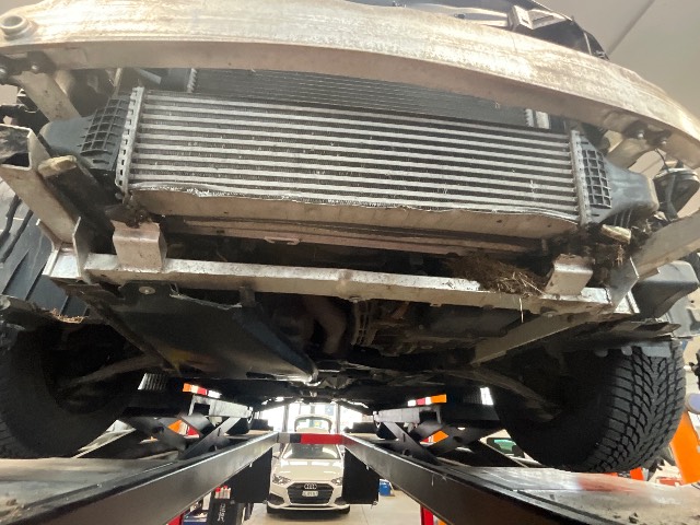 Pare-chocs avant, Partie avant droite, Roue avant droite, Roue arrière droite, Aile avant droite, Pare-chocs avant endommagé, passage de roue avant droit endommagé, moteur visible par en dessous, fortes vibrations ressenties à basse vitesse..... / Dommages préexistants: traces d'utilisation