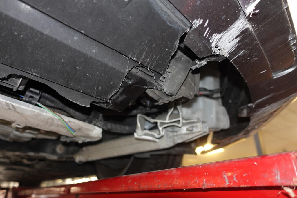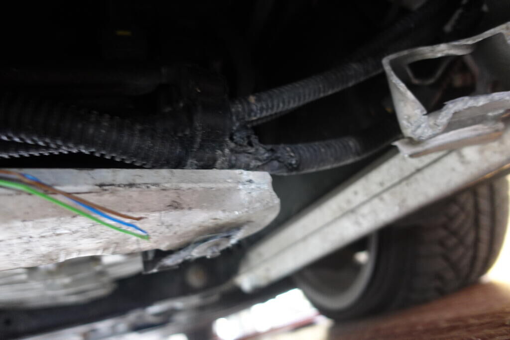 Choc inférieur et latéral gauche: Pare-chocs avant, grilles avant, roue avant gauche, aile avant gauche, portes avant et arrière gauche, bas de caisse gauche, roue arrière gauche, berceau, demi train avant gauche, direction, bocal lave-glace, faisceau borne, radiateurs, supports de radiateurs; endommagés. Tous les prétensionneurs de ceinture déclenchés. Motor Getriebe Vorderachse Hinterachse Airbags ausgelöst: 0 unbekannt ( Abfallcode 16.01.04ak )