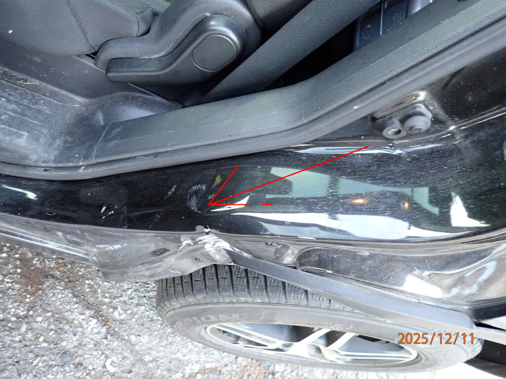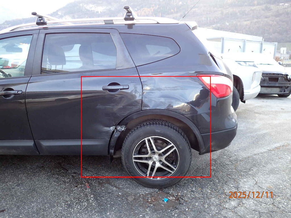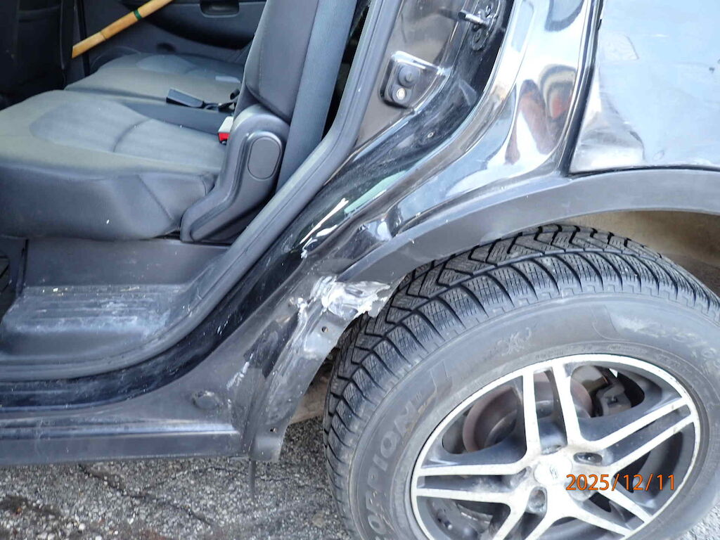 Porte et aile arrière gauche. Passage de roue arrière gauche écrasé. Motor Getriebe Vorderachse Hinterachse Airbags ausgelöst: 0 unbekannt ( Abfallcode 16.01.04ak )