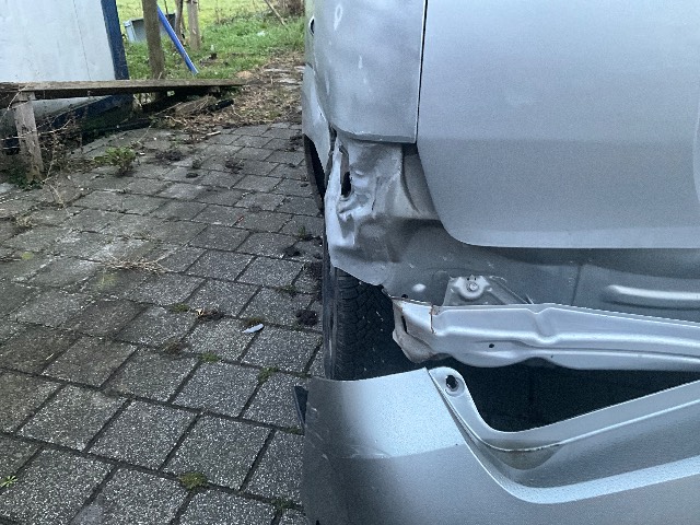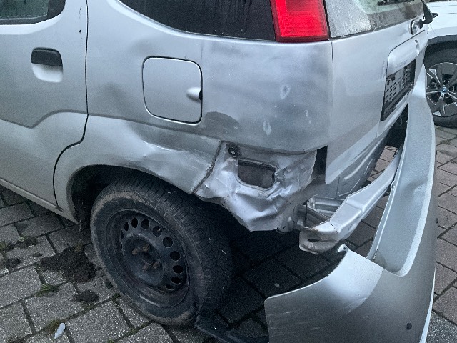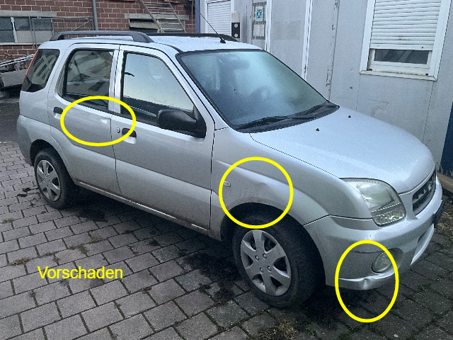 Beschreibung der Schäden: Seitenwand, Stossfänger eingedrückt, Hinterachse deformiert Vorbestandene Schäden: Vorne rechts: Kotfl vr eingedrückt Seite rechts: Türe hr eingedrückt