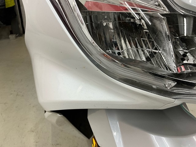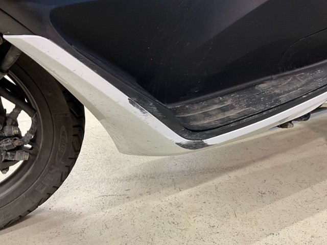 Linke Seite beschädigt. Ist auf die linke Seite gefallen. Verschalung oben links gebrochen. Verschalung unten links verkratzt. Verschalung hinten links verkratzt.