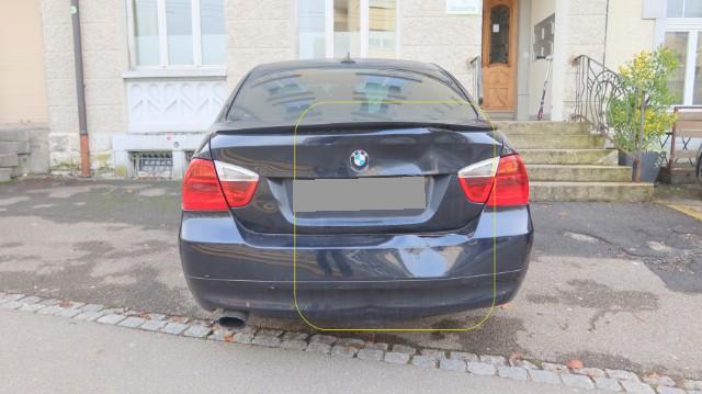 Beschädigung Stossstangenabdeckung hinten gerissen und verformt, diverse Abdeckungen hinten gebrochen, Querträger und Heckblech eingedrückt, Heckklappe eingedrückt und verformt, Spoiler gerissen. Weitere Beschädigungen sind nicht ausgeschlossen. Reparaturkostenberechnung rein approximativ, da um ein genaues Schadenquantitativ zu berechnen das Fahrzeug teilzerlegt und die Lenkgeometrie vermessen werden müsste.