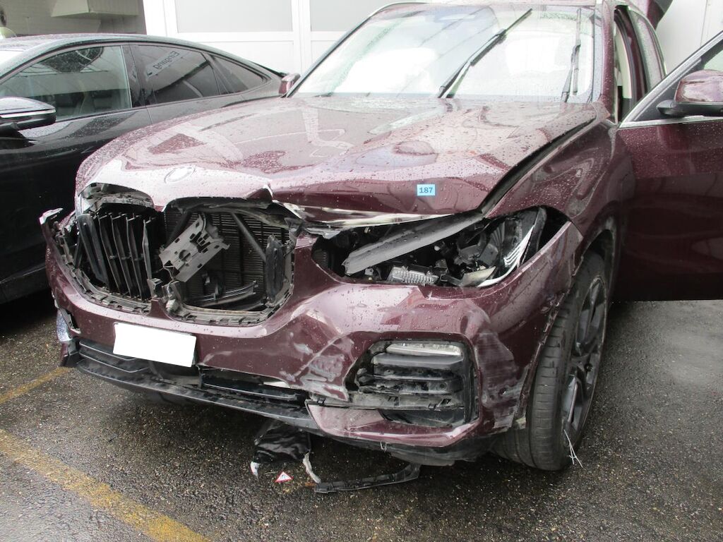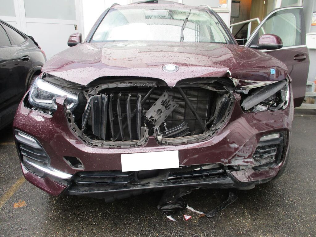Starke Schäden an der Front und an der Seite links. Der Vorbau ist komplett zertrümmert und nach rechts verschoben. Alle Teile vorne sind zerstört. Die Seitenwand HL ist deformiert, die Stossst. H ist angeschürft. Die Radaufhängungen VL und HL sind gekrümmt. Die Felgen beschädigt. Es sind 5 Airbags lose Motor Getriebe Vorderachse Hinterachse Airbags ausgelöst: 5 unbekannt ( Abfallcode 16.01.04ak )