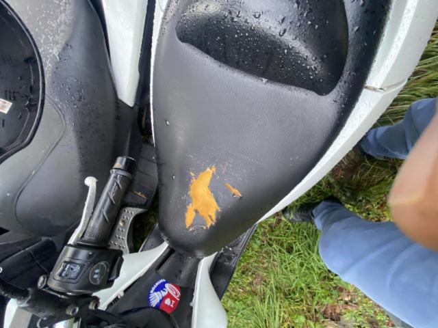 Schutzblech vorne defekt. Vorderrad beschädigt. Gabel beschädigt. Gabel Risiko. Lenker verbogen.