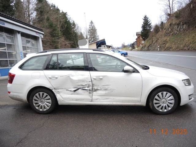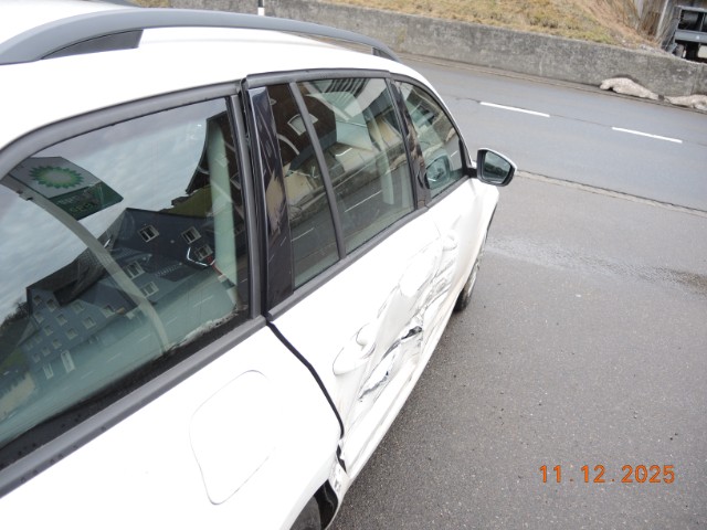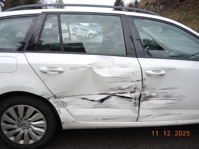 Rechte Seite beschädigt. Anstoss rechts im Bereich der B-Säule. Anstoss rechts im Bereich der C-Säule.