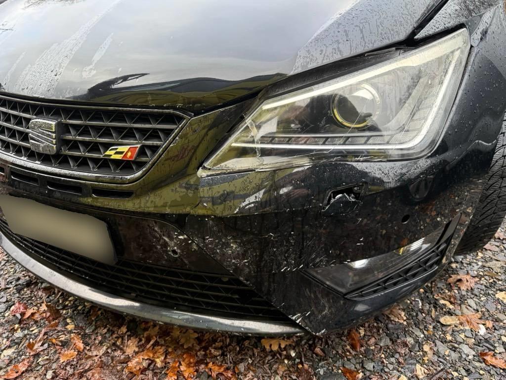 Airbag ausgelöst, Front, Front links, Front rechts, Gurtstraffer ausgelöst, Kühlgitter, Lenkung, Motorhaube, Rad vorne rechts, Radaufhängung vorne links, Radaufhängung vorne rechts, Scheinwerfer links, Stosstange vorne, Vorderachse