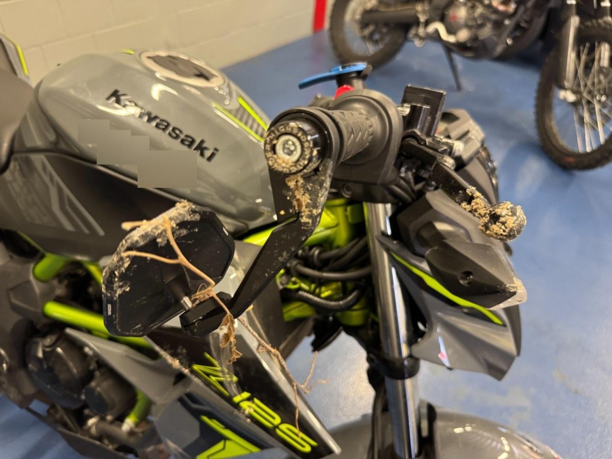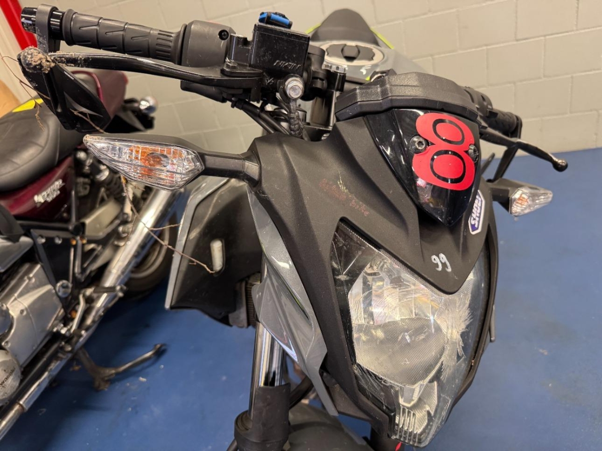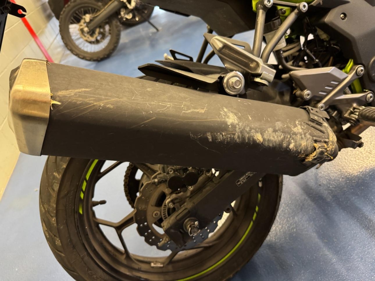 Auspufftopf, Aussenspiegel links, Aussenspiegel rechts, Diverse Anbauteile, Front, Gabelholm, Scheinwerfer, Seite rechts