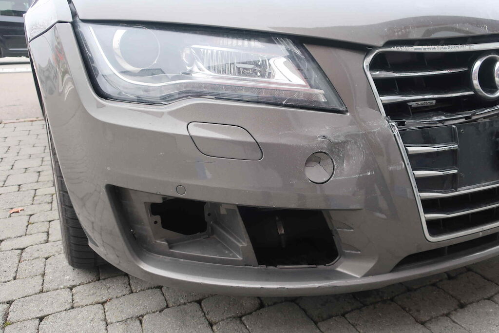 Beschädigungen: Stosstange vorne, Kühlergrill, Kotflügel vorne rechts, Motorhaube, Scheinwerfer vorne rechts Motor Getriebe Vorderachse Hinterachse Airbags ausgelöst: 0 unbekannt ( Abfallcode 16.01.04ak )