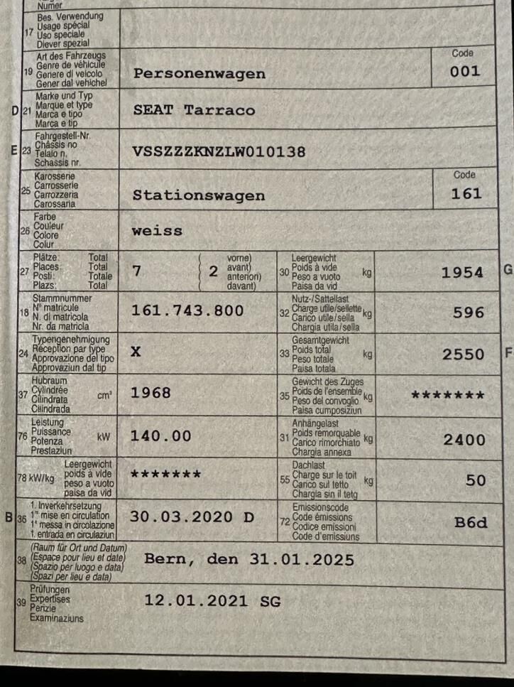 Anprall Seite links. Dabei wurde die Türe hinten links, Türe vorne links, die Seitenscheibe vorne links, die B-Säule links und die Türe vorne rechts beschädigt. Die Reparaturkosten übersteigen den Zeitwert des Fahrzeuges nicht, es liegt kein Totalschaden vor. Der Versicherungsnehmer möchte aber das Fahrzeug nicht mehr reparieren lassen. Deshalb wurde eine ausservertragliche Einigung auf der Zeitwert-Basis erzielt. Motor Getriebe Vorderachse Hinterachse Airbags ausgelöst: 0 unbekannt ( Abfallcode 16.01.04ak )