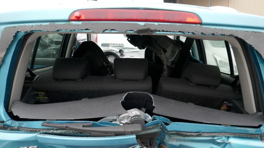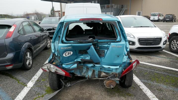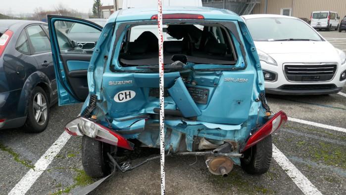 VIOLENT CHOC ARRIÈRE : Coque déformée. Hayon, pare-chocs arrière, plancher, renforts, doublures, , ailes arrière gauche et droite, longerons arrière gauche et droit, feux arrière gauche et droit, lunette arrière, garnitures de coffre, échappement enfoncés, emboutis, déformés, contraints, éraflés, brisés, endommagés. Siège avant gauche endommagé, gauchis, déformé. Risques sur train arrière. / DEGATS PREEXISTANTS : Traces d’utilisation.
