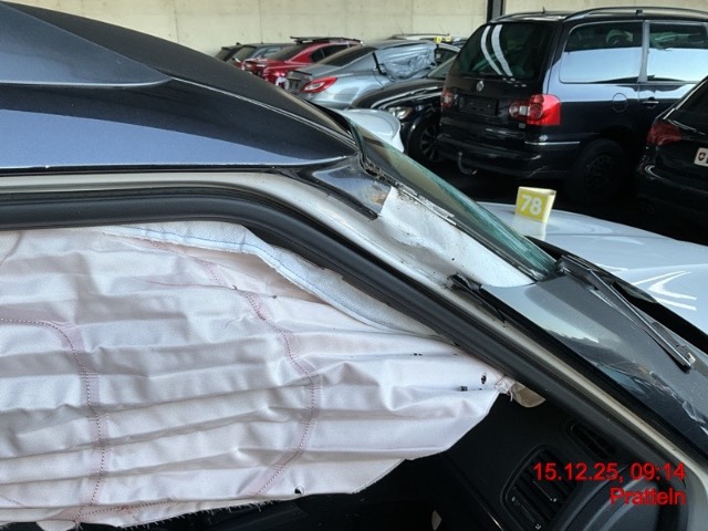 Beschreibung der Schäden: Stossfänger, Prallträger, Pralldämpfer, Kühler Paket, Scheinwerfer rechts, Nebellampe rechts, Motorhaube, Kotflügel, Reifen vorne rechts, A-Säule, Dachrahmen, Tür vorne, rechts, Tür hinten rechts, Schweller rechts, B Säule rechs, Seitenwand rechts, Stossfänger hinten, Schlussleuchte rechts deformiert/gebrochen/zerkratzt Airbag: Fahrer und Beifahrer, Kopfairbag rechts, Seitenairbag rechts ausgelöst. Gurtstraffer: Fahrer und Beifahrer ausgelöst Motorkante bei der Besichtigung gestaltet werden. Jedoch kommen ein Gefällemeldungen in Bezug auf Kühlmittel und Scheibenwasser. Die Motorhaube konnte bei der Besichtigung nicht geöffnet werden.