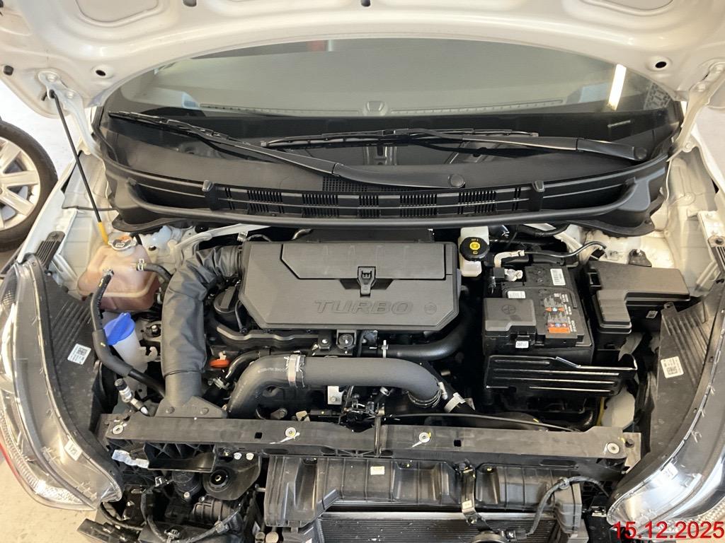 Assist: Berganfahrhilfe, Assist: Automatisches Notrufsystem eCall, Polster: Stoff-Ausstattung, ABS, EBD elektronische Bremskraftverteilung, Schwarz-glänzender Kühlergrill, Licht: Halogen-Projektionsscheinwerfer, Lenkrad: Audiofernbedienung am Lenkrad, Make-up Spiegel, Fensterheber Fahrerseite mit Auf-/Abwärtsautomatik und Einklemmschutz, Licht: LED Heckleuchten, Airbag: Airbag Beifahrer deaktivierbar, Armlehne für Fahrersitz, Sitze: Höhenverstellbarer Fahrersitz, Assist: Einparkhilfe hinten, Räder: Leichtmetallfelgen 16" 195/45 R16, Gurtwarner auf allen Plätzen, Airbag: Seitenairbag für Fahrer und Beifahrer, Insassenalarm, Sitze: Sitzheizung vorne, Media: 2x USB-Anschluss vorne, Licht: Fernlicht-Assistent, Getriebe: 5-Gang-Getriebe, Assist: Rückfahrkamera mit digitalem Rückspiegel, Media: 4.2" TFT LCD Kombiinstrument, Assist: Spurhalteassistent, Licht: Statisches Kurvenlicht, Assist: Verkehrszeichenerkennung mit automatischer Geschwindigkeitsregelung, Media: Multi-Bluetooth mit Freisprecheinrichtung, Media: Navigationssystem mit 8" Touchscreen, Aussenspiegel elektrisch einklappbar, Räder: Reifendruckkontrollsystem, Servolenkung geschwindigkeitsabhängig, Assist: Automatisches Notbremssystem mit Fussgänger- und Fahrraderkennung, ISOFIX Kindersitzvorrichtung, Wegfahrsperre elektronisch, Media: DAB+ (Digital Audio Broadcasting), Licht: Nebelscheinwerfer, Ambientebeleuchtung, Alu-Pedale, Vorbereitung für Anhängevorrichtung (ohne 13-polige Steckdose), Stossstangen in Wagenfarbe, Bremsassistent (BAS), Media: Telematikdienst Bluelink Light (10 Jahre gratis), Airbag: Airbag Fahrer und Beifahrer, Gepäckraumbeleuchtung, Media: 1x USB-Anschluss hinten, Garantie: Garantie 12 Jahre gegen Durchrostung, Garantie: 5 Jahre ohne Kilometerbegrenzung, Assist: Aufmerksamkeitsassistent, Aussenspiegel mit integrierten Seitenblinkern, Media: Kabelloses Laden für Qi-kompatible Smartphones, Media: MapCare Lifetime - lebenslange Updates (exkl. Arbeitsleistung), Aussentemperaturanzeige, Privacy Glass, abgedunkeltes Scheibenglas hinten (ab B-Säule), Lackierung: Pearl-Lackierung Mangrove Green Pearl, Licht: LED-Tagfahrlicht, 3-Punkt-Sicherheitsgurte auf allen Plätzen, Sitze: Kopfstützen vorne und hinten, Sicherheitsgurte vorne mit Gurtstraffer, Assist: Spurfolgeassistent, Alarmanlage, Sitze: Rücksitze getrennt abklappbar (60/40), Lenkrad: Lenkrad höhenverstellbar, Elektronisches Stabilitäts-Programm (ESP), Airbag: Vorhangairbags vorne und hinten, Start-/Stopp-Automatik, Assist: Tempomat mit Geschwindigkeitsbegrenzer, Licht: Lichtautomatik, Klima: Klimaautomatik mit Anti-Beschlagsystem, Elektrische Fensterheber hinten, Lenkrad: Lenkrad beheizbar, Elektrische Fensterheber vorne, Zentralverriegelung, Aussenspiegel in Wagenfarbe, Media: 4 Lautsprecher, Türgriffe in Wagenfarbe, Media: Android Auto - und Apple CarPlay -Funktion, Gepäckraumabdeckung, Einklappbarer Schlüssel mit Fernbedienung, Aussenspiegel rechts und links beheizbar und elektrisch verstellbar, Räder: Reifenreparatur-Set, Höhenverstellbarer Kofferraumboden, Lenkrad: Lenkrad und Schalthebelgriff in Leder