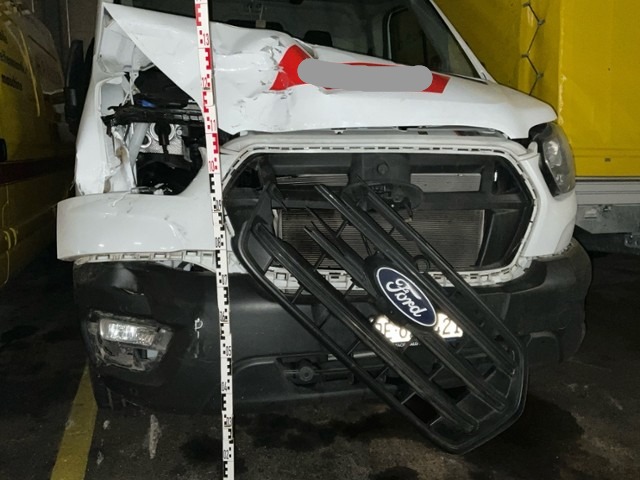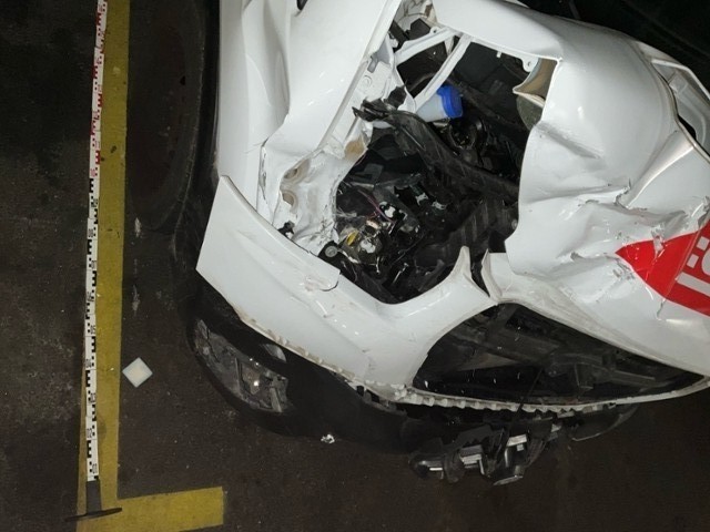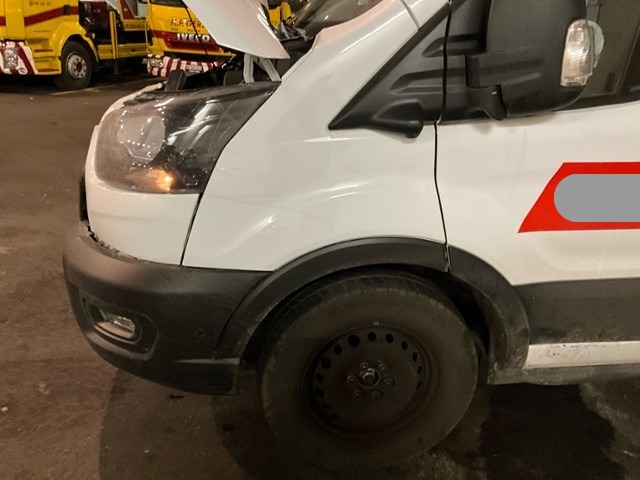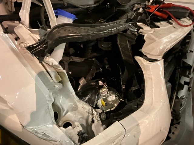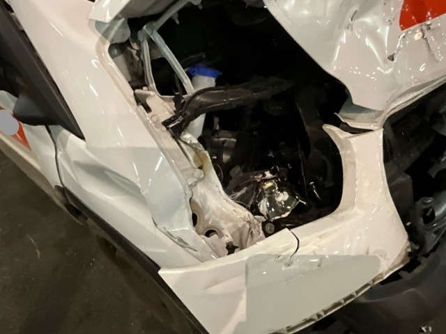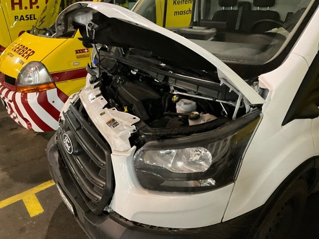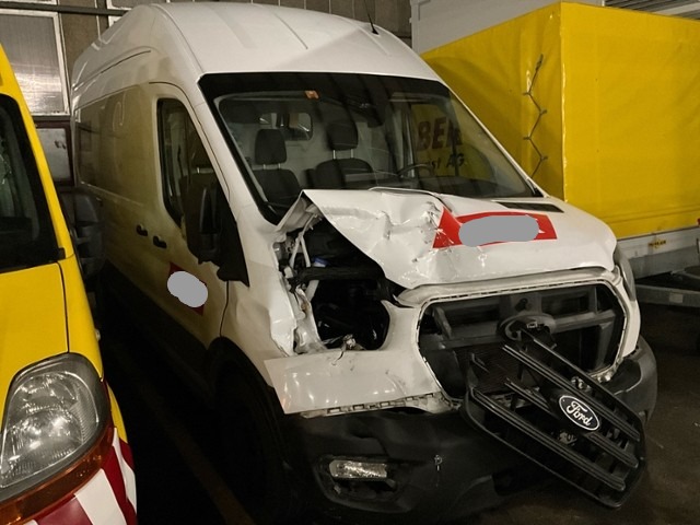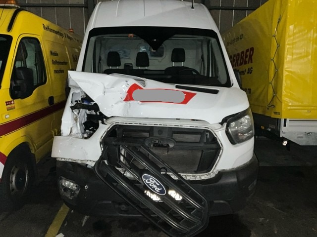 Front eingedrückt. Front rechts eingedrückt. Frontblech/Maskenblech eingedrückt. Radhaus vorne rechts eingedrückt / gestaucht. Längsträger vorne rechts gestaucht. Fahrzeugvorbau verschoben.