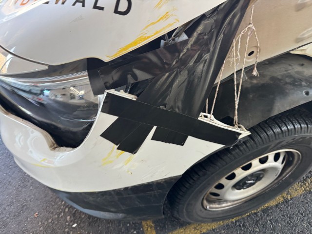 Front eingedrückt. Front links eingedrückt. Frontblech/Maskenblech eingedrückt. Radhaus vorne links eingedrückt / gestaucht.