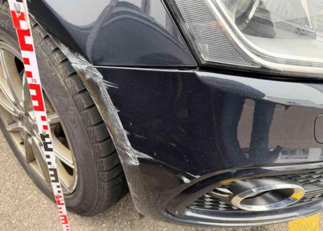 Aufhängungsteile vorne rechts beschädigt. Risiko Vorderachse. Risiko Hinterachse. Hinterachse rechts beschädigt. Risiko Lenkung.