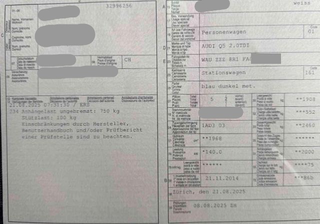 Fahrzeugdokumente vorhanden.