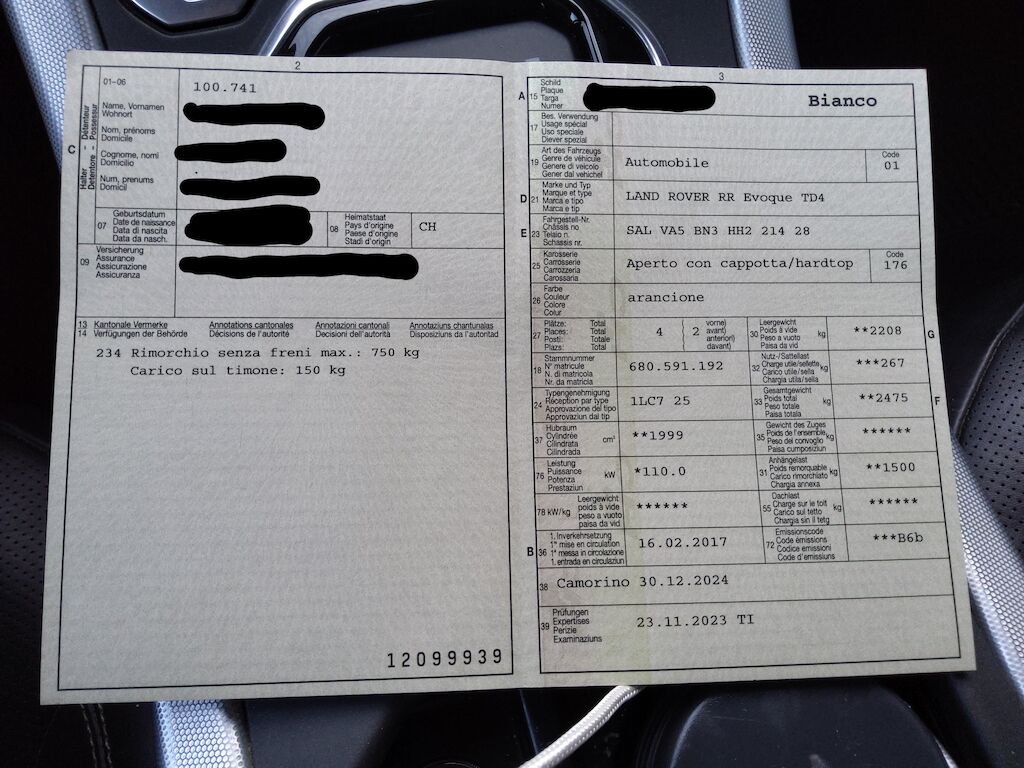 Non è stata effettuata alcuna ispezione tecnica (prova in officina) Cerchio ruota rovinato Rivestimento esterno capotte usurato Parabrezza riparato in tre punti e puntinato Danno paraurti posteriore SX Rivestimento sedili e pannelli porte anteriori usurati Rivestimento sedile guida scucito Guarnizione bagagliaio rotta Motor Getriebe Vorderachse Hinterachse Airbags ausgelöst: 0 Nein ( Abfallcode 16.01.04ak )