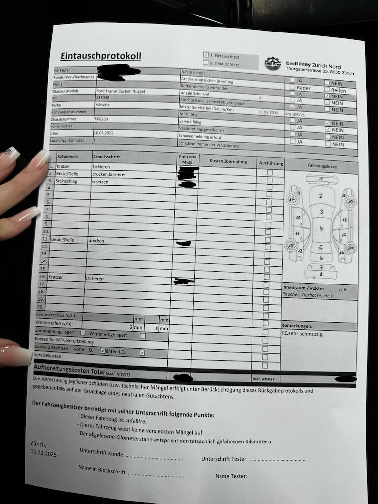 Keine technische Prüfung (Werkstatttest) vorgenommenDiverse Schäden an Karosserie/Lack.Fahrzeug ab Platz, ohne Garantie und Aufbereitung.DPF/FAP Filter nicht kontrolliertKeine Gewähr auf die Angaben der Sonder- und Serienausstattung / keine mechanische Prüfung. Fahrzeug wurde unzerlegt expertisiert / keine Haftung für allfällige, nach Demontage bekanntwerdenden Mängel. Fahrzeugbereifung und Ausstattung gemäss Fotos / Fahrzeugkauf auf eigenes Risiko ab Platz ohne Nachwährschaft.- Div. Kratzer und Dellen am gesamten Fahrzeug.- Div. kleine Steinschlag am Frontscheibe- Letzter Serviceeintrag 11.03.2025 bei 108771 km