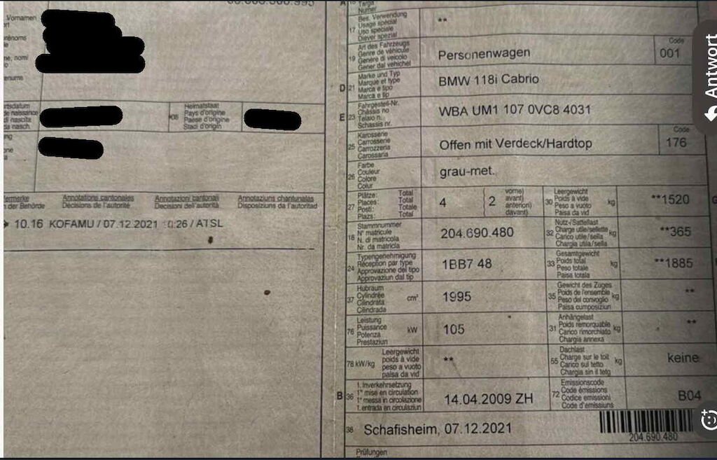 Offensichtlicher TotalschadenCH-TypengenehmigungFahrzeug steht bei Kunde zuhause und startet nicht mehr.