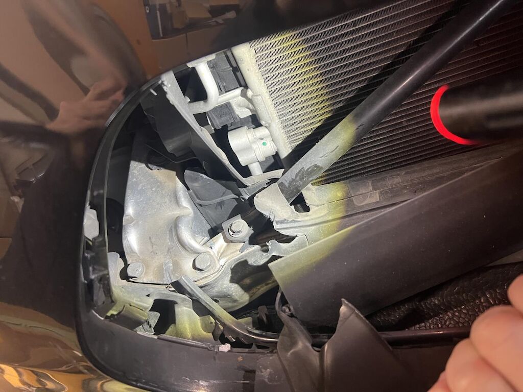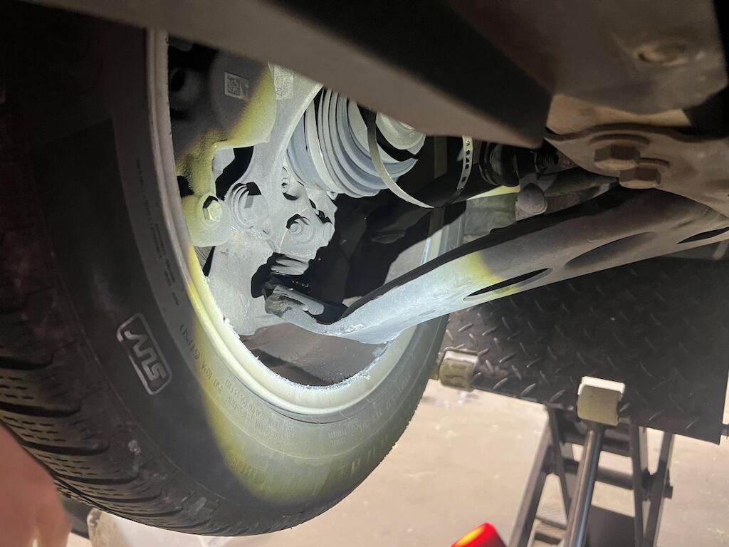 Anprall Front, Unterboden und rechte Seite Dabei wurde die Stossstange vorne, der Scheinwerfer, die Motorhaube, die Kühler, die Vorderachs, die Lenkung, die Antriebswelle vorne, die Aushängung vorne und hinten, die Felgen und Reifen rechts, die Hinterachsaufhängung und diverse Anbauteile beschädigt Motor Getriebe Vorderachse Hinterachse Airbags ausgelöst: 0 Nein ( Abfallcode 16.01.04ak )