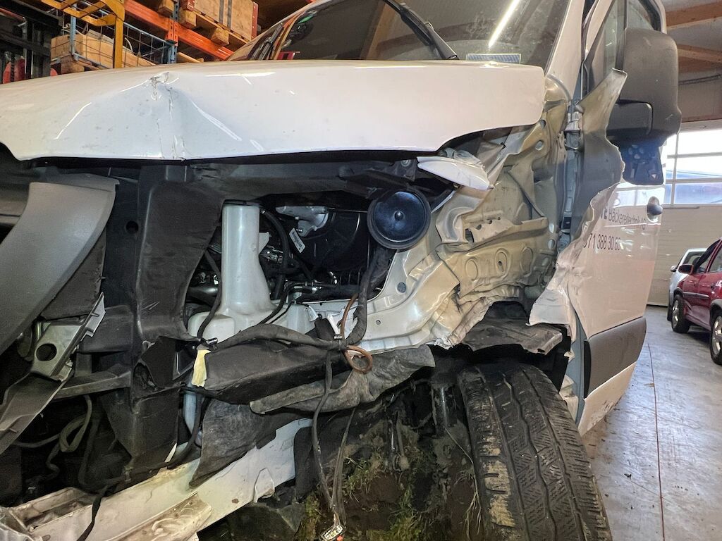 Kollisionsschaden, Aufprall in Fahrzeugfront links mit Beschädigung von Stosstange vorne, Motorhaube, Scheinwerfer links, Kotflügel links, oberer Längsträger links, Beplankung links, Türe links, Schweller links, Seitenwand, links, Fahrer und Beifahrerairbag, Gurtstraffer sowie diversen Anbauteilen. Motor Getriebe Vorderachse Hinterachse Airbags ausgelöst: 2 unbekannt ( Abfallcode 16.01.04ak )