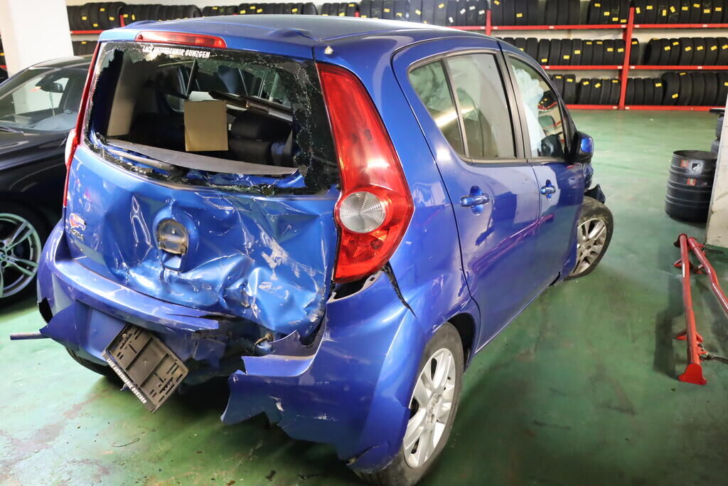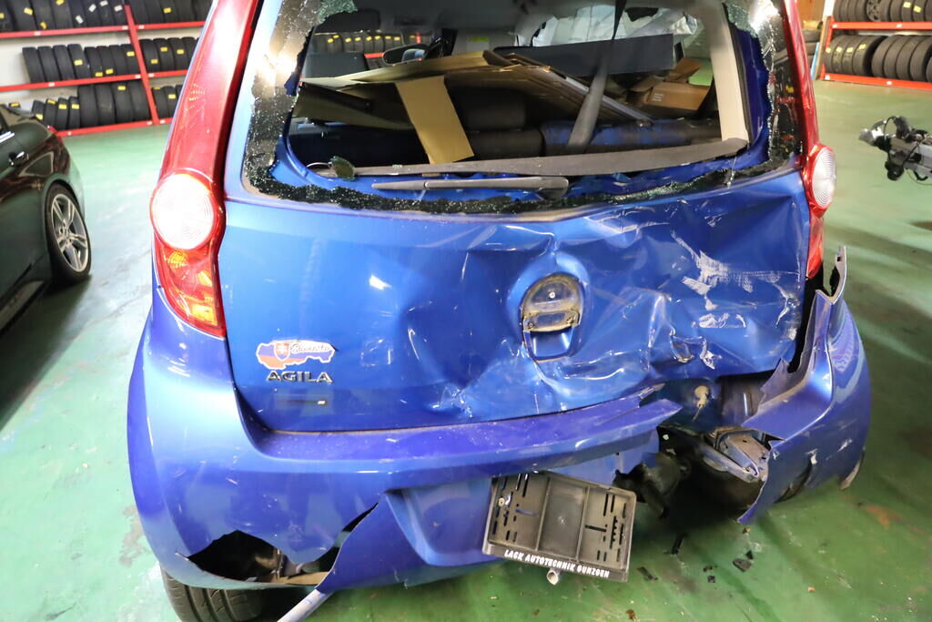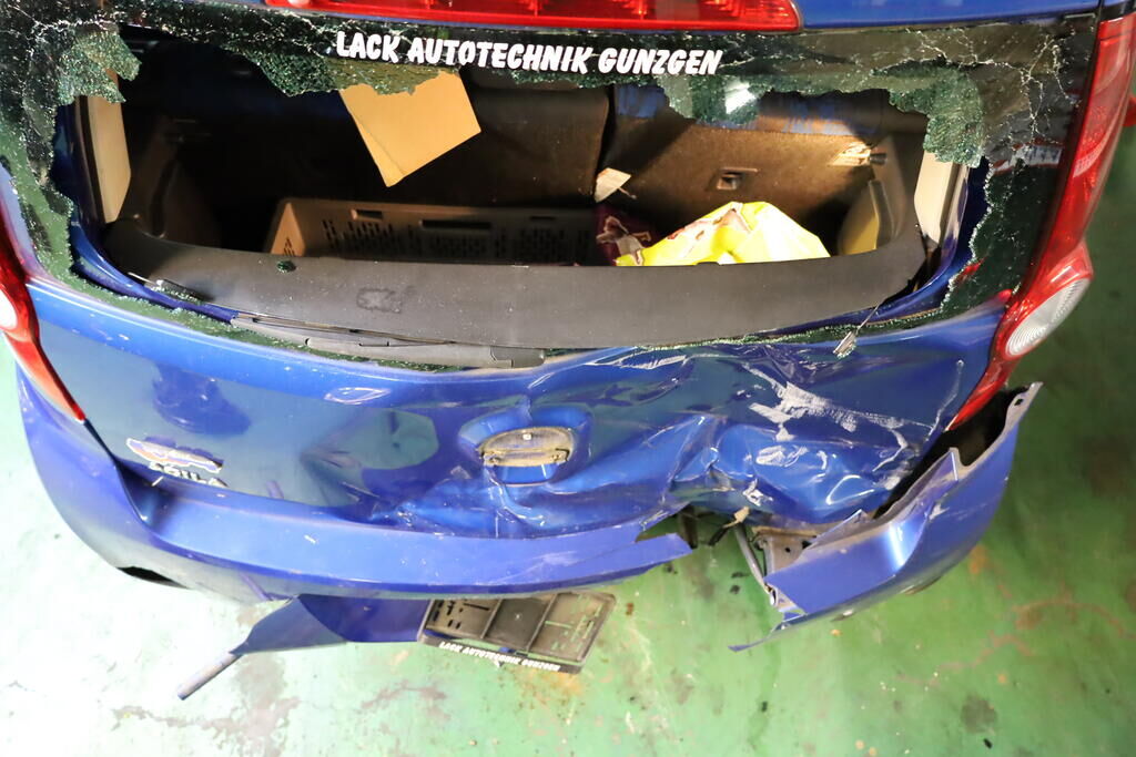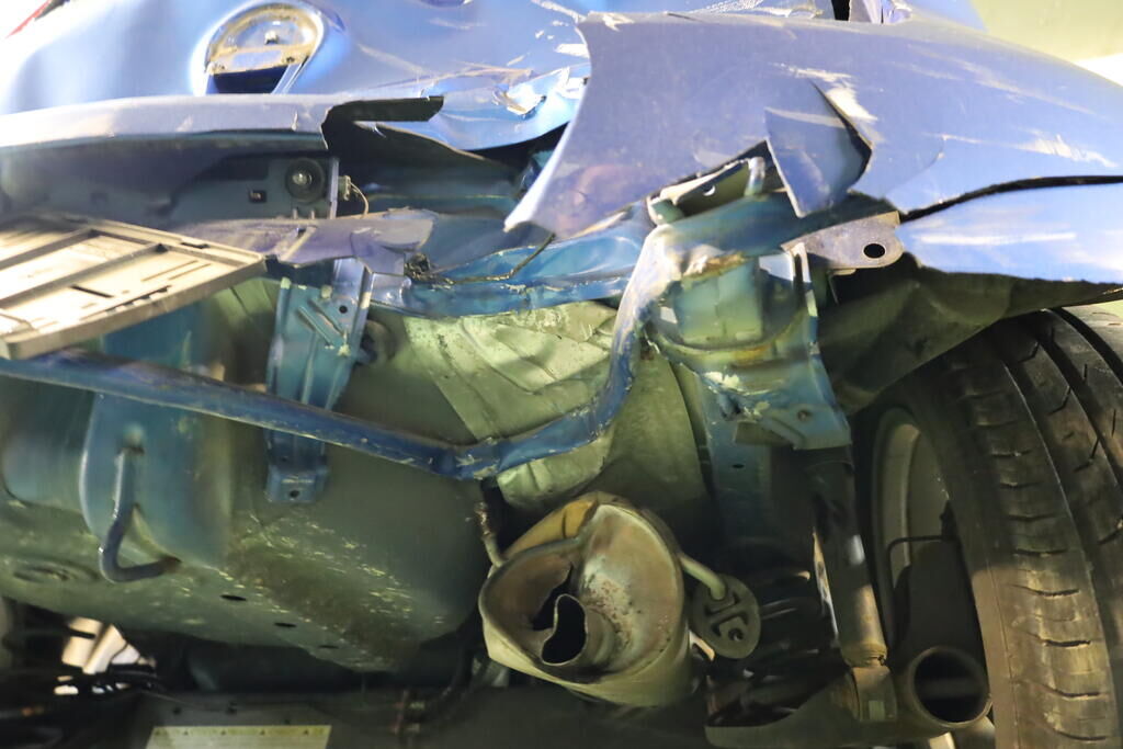 Anprall an die rechte Fronpartie mit Deformation von Motorhaube, Stossfänger, Scheinwerfer, Kotflügel, Tür vorne sowie Radaufhängung vorne rechts. Heckanprall rechts mit Deformation von Heckklappe, Heckscheibe, Seitenwand, Stossfänger, Heckblech, Kofferboden, Längsträger rechts sowie Nachschalldämpfer. Ebenfalls wurde rechte Kopf- sowie Seitenairbag ausgelöst. Risiko: Hinterachse Motor Getriebe Vorderachse Hinterachse Airbags ausgelöst: 2 Nein ( Abfallcode 16.01.04ak )