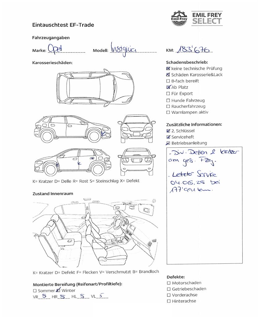 Keine Gewähr auf die Angaben der Sonder- und Serienausstattung / keine mechanische Prüfung. Fahrzeug wurde unzerlegt expertisiert / keine Haftung für allfällige, nach Demontage bekanntwerdenden Mängel. Fahrzeugbereifung und Ausstattung gemäss Fotos / Fahrzeugkauf auf eigenes Risiko ab Platz ohne Nachwährschaft.- Div. Dellen und Kratzer am gesamten Fahrzeug.- Letzter Service 04.06.2025 bei 177'991 km.