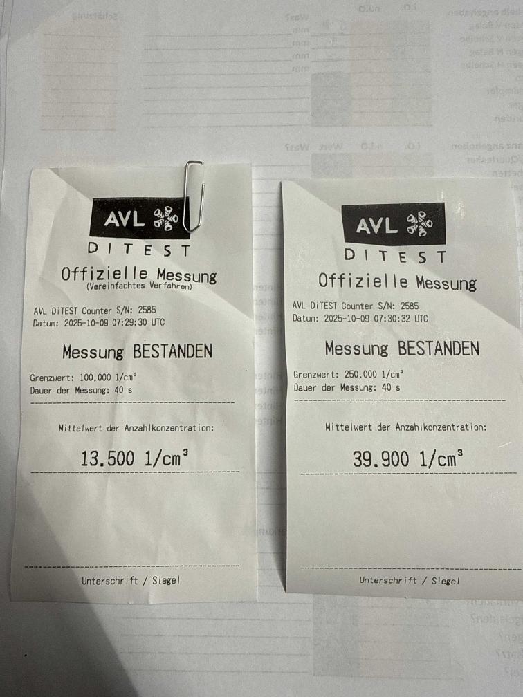 Dieselpartikelfiltertest wurde erfolgreich durchgeführt (Schriftlicher Ausdruck ist vorhanden).