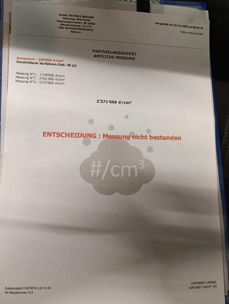 Dieselpartikelfiltertest gemacht und nicht in Ordnung! (ACHTUNG beim Bieten: Der Dieselpartikelfilter muss bei diesem Fahrzeug zwingend ersetzt werden, weil er nicht gut ist!)