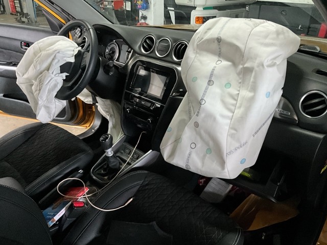 Armaturenbrett ist beschädigt. Gurtstraffer ausgelöst.