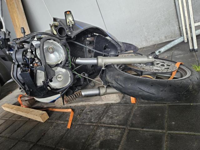 Schutzblech vorne defekt. Vorderrad beschädigt. Gabel beschädigt. Lenker verbogen.