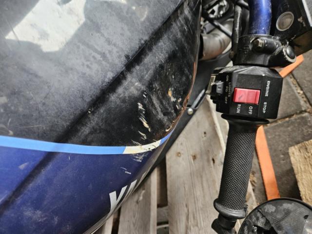 Rechte Seite beschädigt. Ist auf die rechte Seite gefallen. Verschalung oben rechts gebrochen. Verschalung unten rechts gebrochen.
