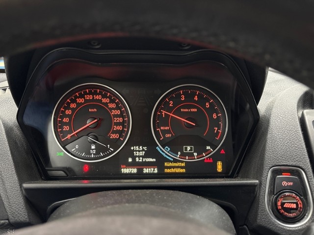 Klimaautomatik inkl. Mikrofilter Fahrer und Beifahrer-Airbag Seitenairbag für Fahrer und Beifahrer Radio BMW Professional Elektrische Fensterheber Aussenspiegel elektrisch verstellbar Dynamische Stabilitäts-Control DSC Pack M Aerodynamik Hochglanz Shadow-Line Cornering Brake Control CBC M-Lederlenkrad Sportsitze für Fahrer und Beifahrer M-Leichtmetallräder Bordcomputer Uni-Lackierung Multifunktions-Lenkrad Reifenpannen-Anzeige Kopfairbags vorne + hinten Dynamische Traktions-Control DTC Armauflage vorn verschiebbar Lenksäule mit Höhen- und Längseinstellung Digital audio DAB-Tuner ABS Antiblockiersystem inklusive Bremsassistent Radschraubensicherung Auto Start Stopp Funktion BIN Dachhimmel anthrazit Rücksitzlehne geteilt umklappbar 40/20/40 Sportlenkung variabel Details siehe gültige Preisliste des Importeurs Interieurleisten Aluminium Hexagon Keine Gewähr auf die Angaben der Serienausstattungen M Sportbremse Akzentleisten Estoril blau matt Stoff Hexagon/ Alcantara Pack Swiss-Premium