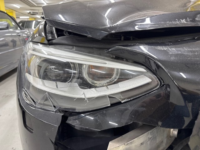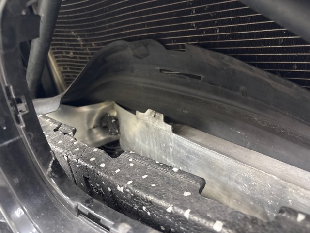 Front eingedrückt. Frontblech/Maskenblech eingedrückt. Radhaus vorne rechts und links eingedrückt. Längsträger vorne rechts und links gestaucht.