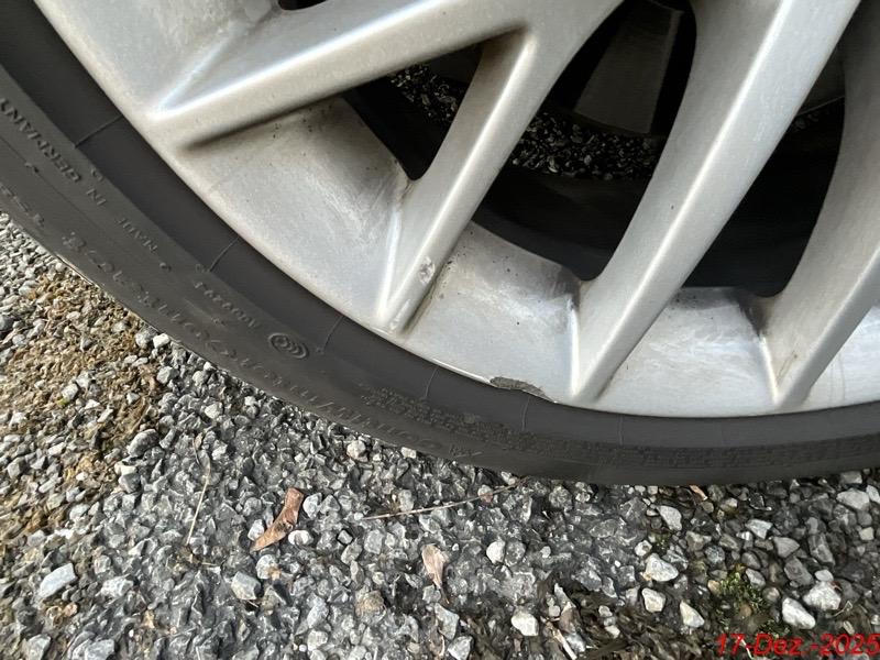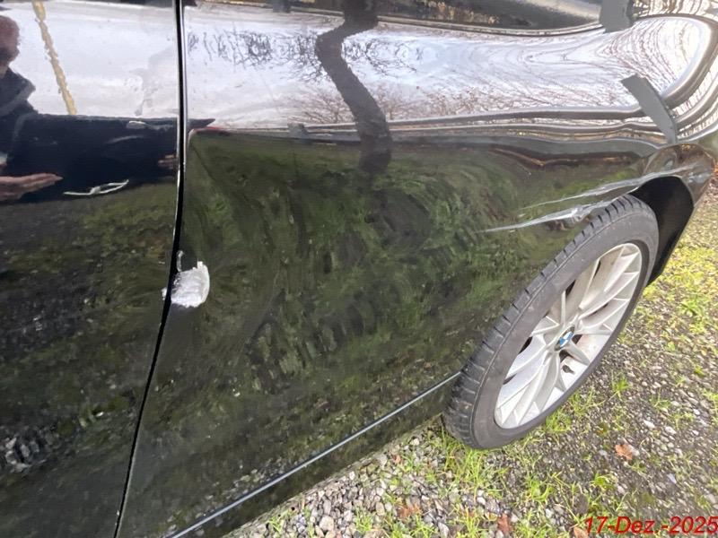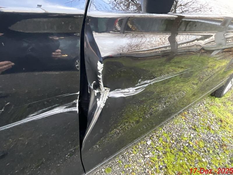 Beschreibung der Schäden: Der Kotflügel, die Stossstange vorne, die Seitentüre, die Seitenwand links, die Felgen sind deformiert mit Kratzer.