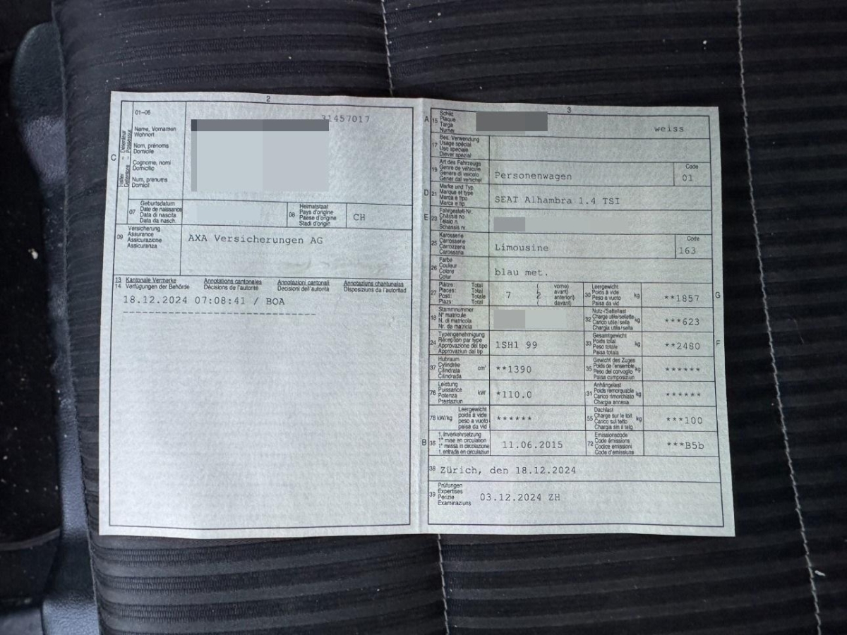 Schublade unter den Vordersitzen, Assist: Bremsassistent (BAS), Airbag: Fahrer und Beifahrer Airbag, Fahrlichtautomatik, Media: Aux-In Anschluss, Pollenfilter (Staubfilter), Türen: Schiebetüren links und rechts, Cupholder hinten, Gurte Höhenverstellbar vorne, Airbag: Beifahrerairbag deaktivierbar, Schalthebelknauf in Leder, ISOFIX Kindersitzvorrichtung, 12-Volt-Steckdose vorne, Wärmeschutzverglasung, Sitze: 2 Einzelsitze in der 3 Reihe, Airbag: Window-Kopfairbags, Navigationssystem Seat Media System 2.2, Befestigungsösen im Laderaum, Sitze: Beifahrersitz höhenverstellbar, Park Distance Control vorne und hinten, 3-Punkt-Sicherheitsgurte auf allen Plätzen, Lenkrad längs- und höhenverstellbar, Bordcomputer, Handschuhfach Beleuchtet, Gurtwarneinrichtung für Fahrer- und Beifahrersitz, Assist: Müdigkeitserkennung, Aussenspiegel in Wagenfarbe, Start/Stop-Funktion, Licht: Nebelscheinwerfer mit Cornering-Funktion, Media: DAB+ (Digital Audio Broadcasting), Sonnenschutzrollos für Türscheiben hinten, Media: USB-Anschluss, Tageskilometerzähler, Schliess- und Startsystem KESSY, Aussenspiegel mit LED Blinker, Kopfstützen hinten höhenverstellbar, Stossstangen in Wagenfarbe, Gurtkontrolle, Sitze: Komfortsitze, Wegfahrsperre elektronisch, Räder: 4 Leichtmetallfelgen 17J mit Pneu, Seat Soundsystem 2.0, Lackierung: Uni-Lackierung, Räder: Reifendruck-Kontrollanzeige, Licht: Bremslicht Drittes, Elektrische Kindersicherung, Getriebe: 6-Gang-Getriebe, Lenkrad: Ledermultifunktionslenkrad, Media: Bluetooth Freisprecheinrichtung, Teppichfussmatten vorne und hinten, Media: Lautsprecher 8, Sitze: Mittelarmlehne vorne mit Ablagefach, Scheibenwischer vorne mit Intervall, Klapptische an den Rückenlehnen der Vordersitze, Assist: Tempomat, Airbag: Seitenairbag für Fahrer und Beifahrer, Cupholder vorne, Klima: 3-Zonen-Klimatisierungsautomatik, Klima: Klimaanlage mit halbautomatischer Regelung, Licht- und Regensensor, Tagesfahrlichtschaltung, 12 Volt-Steckdose im Laderaum, Aussentemperaturanzeige, Zierleisten Seitenfenster verchromt, Handschuhfach gekühlt, Licht: Halogenscheinwerfer, Elektronische Parkbremse, Sitze: Fahrersitz höhenverstellbar, Antiblockiersystem (ABS), Elektronisches Stabilitäts-Programm (ESP), Dachreling silber, Aussenspiegel rechts und links beheizt, elektrisch verstell-/ und einklappbar, Abgedunkelte Seiten- und Heckscheibe, Gurtstraffer vorne, Sitze: Beifahrersitz umklappbar, Media: Radio/CD-Player mit MP3, Zentralverriegelung mit Fernbedienung, Licht: Coming-home-Funktion, Multifunktionsanzeige, Airbag: Knie-Airbag für Fahrer, Servolenkung, 3 Einzelsitze in der 2 Reihe, Heckscheibenheizung, Fensterheber Elektrisch vorne + hinten, Licht: Tagfahrlicht, Easy-Entry, Regensensor für Scheibenwischer vorne, Sonnenblende Fahrer und Beifahrerseite mit beleuchtetem Spiegel, Assist: Rückfahrkamera, Aktivkohlefilter, Antriebsschlupfregelung (ASR), Heckscheiben-Wisch-Waschanlage mit Intervall, Katalysator geregelt