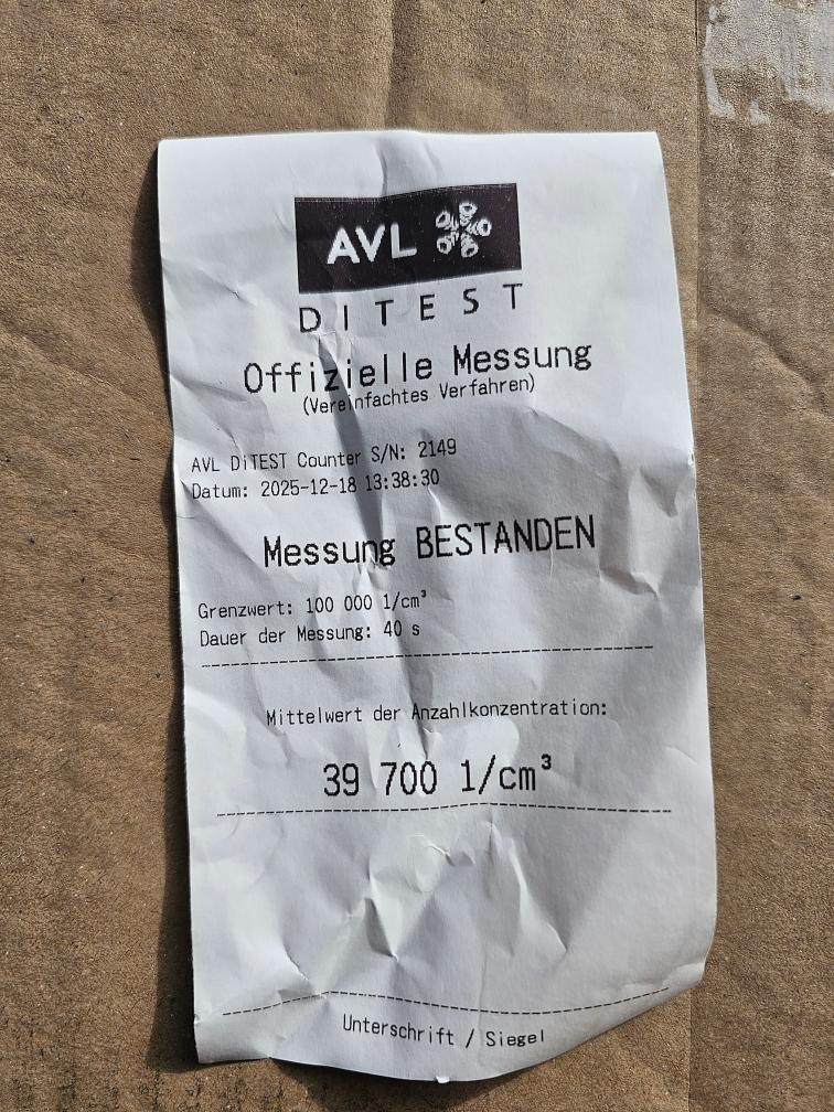Dieselpartikelfiltertest wurde erfolgreich durchgeführt (Schriftlicher Ausdruck ist vorhanden).